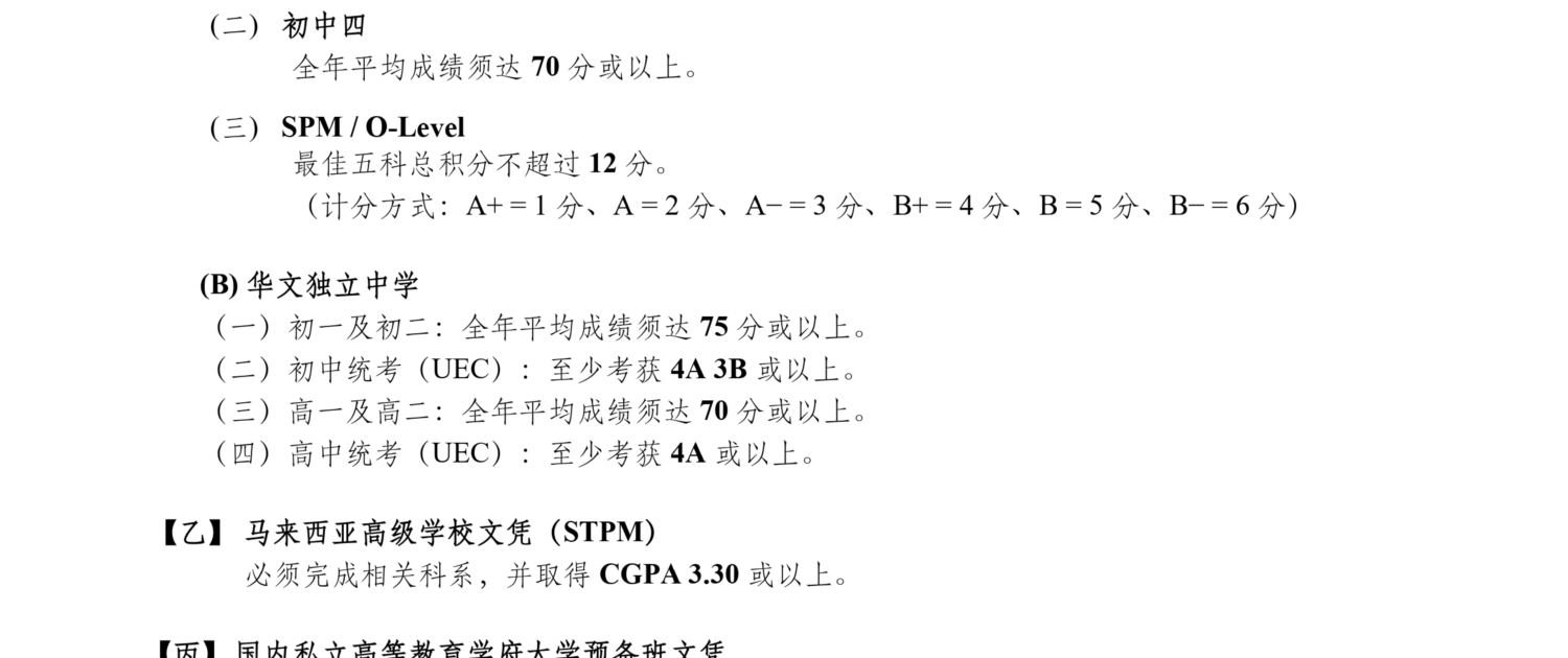 (二)初中统考(UEC):至少考获 4A 3B 或以上。