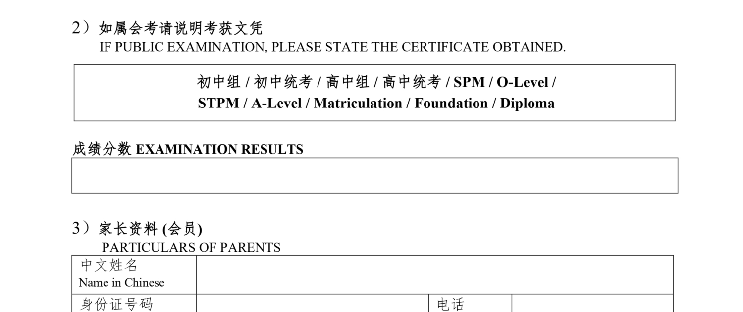 c) 所有申请表格必须由家长签名,并经属会负责人盖章签署后方为有效。